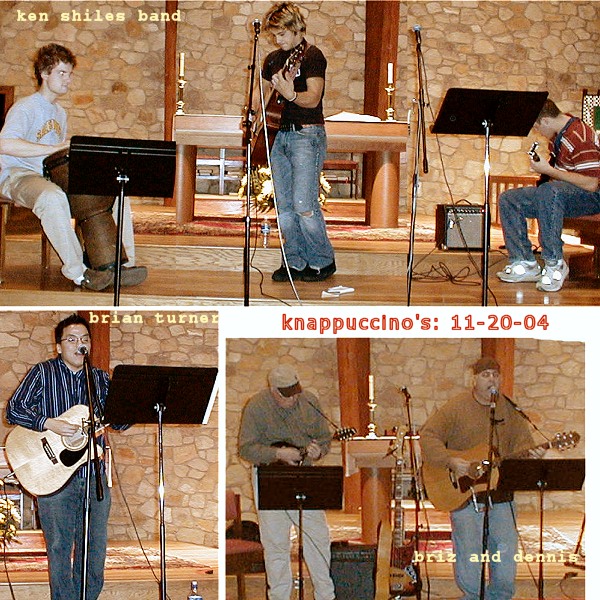 Kicking off the night were Briz and Dennis, who played amazing original songs which told great stories and painted vivid pictures of life experiences. To learn that Briz owned a deli instantly makes him a favorite, considering how much we love food. :-) Grabbing the middle slot was Ken Shiles Band, also gracing our stage for the first time. KSB not only brought our first djembe to our stage, but they also broke the evening's mandatory guitar string. Holding the coveted closing slot is our Knappuccino's Muse, Brian Turner, who rocked out with his socks out, as per his usual.